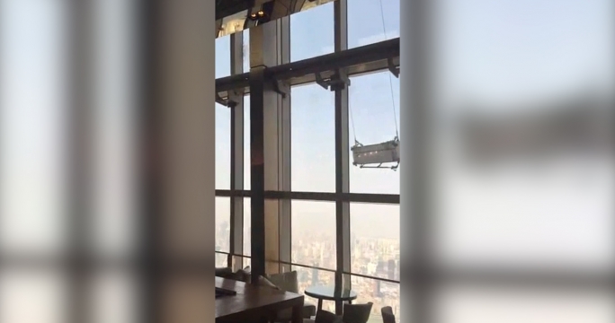 Двое китайских мойщиков окон застряли на 91-м этаже из-за ветра