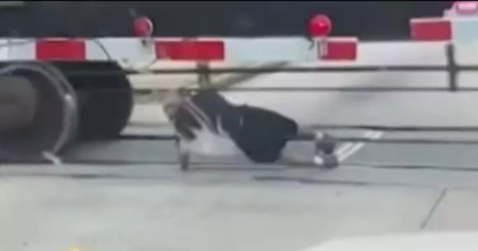 Один из водителей США снял на камеру видео не для слабонервных. Он запечатлел, как мужчина бросается под колеса поезда на одном из железнодорожных переездов и,буквально, за секунду до гибели успевает проскачить под вагонами. На видеозаписи отчетливо видно, что свой смертельный номер он повторяет не один раз. По всей видимости, парень - экстремал и подобный трюк доставляет ему огромное удовольствие.