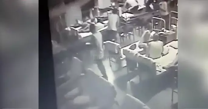 На кадрах видно, как бойцы готовятся ко сну, кровати расправлены, солдаты ходят по расположению в нижнем белье. Внезапно стена казармы проваливается вниз, а потолочная плита падает прямо на кровати новобранцев.