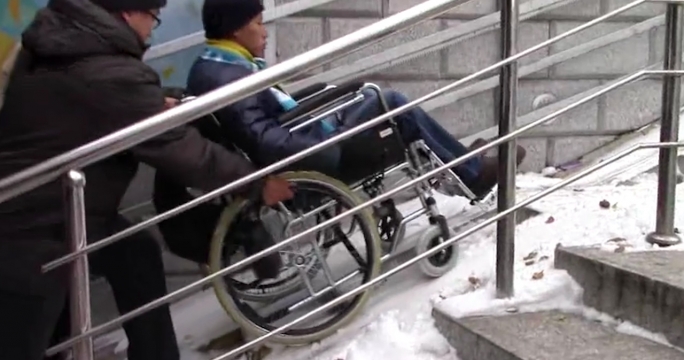 Видео "восхождения" инвалидов-колясочников к ТРЦ "Хан-Шатыру" по пандусу появилось в соцсети Facebook. Пользователь Азиз Заиров снял на видео, как несколько парней в инвалидных креслах пытались подняться по крутому пандусу, который к тому же припорошило снегом. Это у них не вышло даже с помощью прохожих. Лифт оказался в нерабочем состоянии. "Тут каскадером быть надо!!! И это в центре столицы Казахстана" - отмечает в подписи к видео автор поста. Героями любительской записи, которая за несколько часов набрала несколько тысяч просмотров, стали ребята из видеостудии молодых инвалидов "Новый мир". Опубликовав видео в соцсетях, они надеются обратить внимание властей к проблеме недоступности объектов социальной инфраструктуры для людей с ограниченными возможностями.