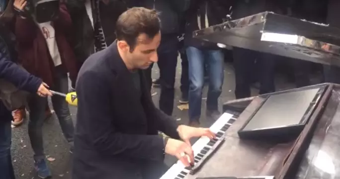 Пианист сыграл мелодию Джона Леннона у концертного зала "Батаклан" в Париже. Француз привез к месту трагедии небольшое пианино и исполнил композицию "Imagine" в память о жертвах теракта. Здесь накануне были расстреляны десятки человек и около 100 взяты в заложники.