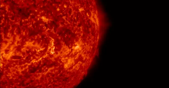NASA опубликовало видео сверхмощной вспышки на Солнце, которая произошла 15 ноября. Это событие длилось около четырех часов, но в ролике его сжали до 18 секунд. Американские астрономы зафиксировали выброс темного вещества с поверхности светила. Эти вещество похоже на нити, привязанные к поверхности Солнца магнитными силами. Они немного темнее светила из-за сравнительно невысокой температуры. Это видео было снято в экстремальных ультрафиолетовых длинах волн 304 ангстрем и раскрашено в красный цвет.