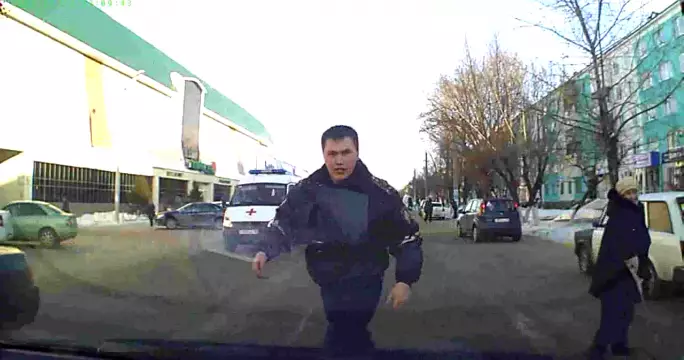 В Сеть выложили видео с регистратора автомобиля в Петропавловске, на котором видно, как полицейский помогает бабушке с палочкой перейти скользкую дорогу. Большинство пользователей оставляют положительные комментарии и отмечают, что казахстанским стражам порядка следовало бы брать пример с этого героя.
