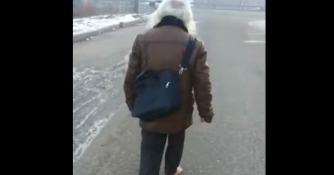 В YouTube появилось видео с босоногим мужчиной, который устроил прогулку по зимнему Алматы. На любительских кадрах пожилой мужчина одет в теплую шапку, куртку, но без обуви. Босой дедушка идет по обочине дороги, не обращая внимания на взгляды удивленных прохожих. По информации автора видео Данияра Еникеева, мужчина живет в Алматы. Сам дедушка говорит, что устраивает подобные прогулки для закалки организма.