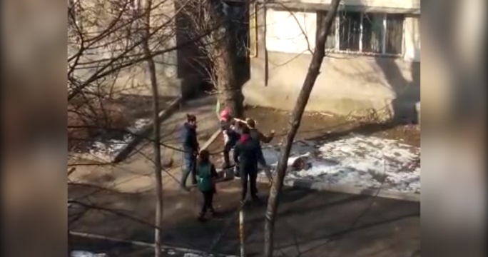 Драку снял очевидец в Алматы. Видеозапись он прислал в редакцию TengrinewsTV. На кадрах видно, как четверо мужчин устраивают потасовку. Женщина в красном фартуке, по всей видимости работающая продавцом, пытается разнять мужчин, однако конфликт перерастает в драку. На 30 секунде видео один из мужчин начинает размахивать палкой и наносить удары своему оппоненту. Автор видеоролика указал, что действие происходит в 16-м военном городке Алматы.