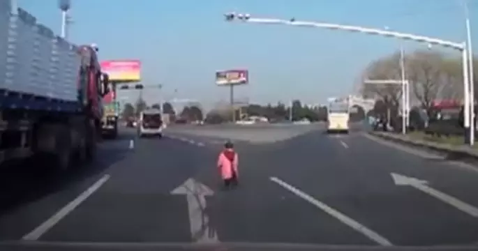 В Китае ребенок выпал из машины прямо на трассе
