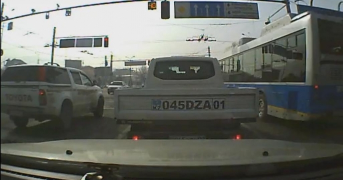 Водитель в Алматы снял автобус, проезжающий на красный свет