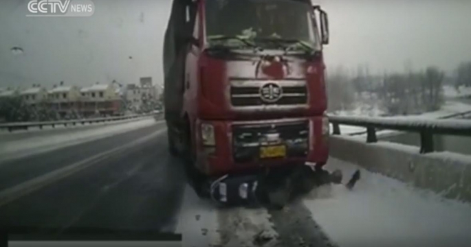 Водитель мопеда чудом остался жив в ДТП с грузовиком в Китае