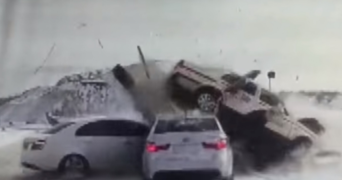 Авария на обледеневшей дороге в Китае попала на видео