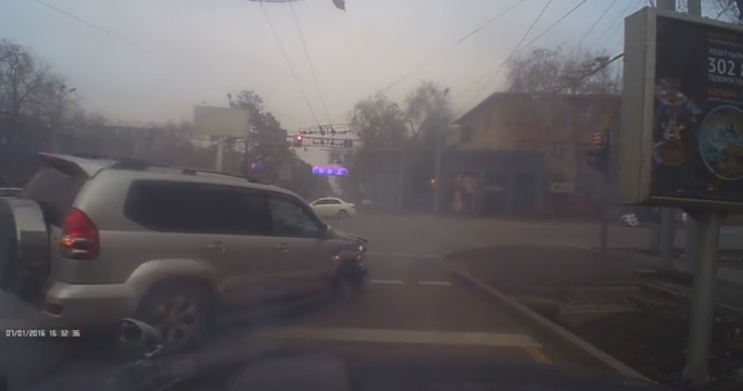 В Алматы внедорожник после ДТП уехал на трех колесах