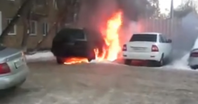 Неудачное спасение авто от огня сняли в Караганде
