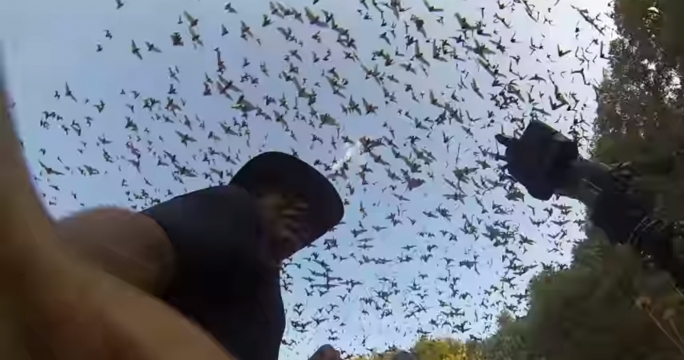 Путешественники сняли армию летучих мышей за охотой