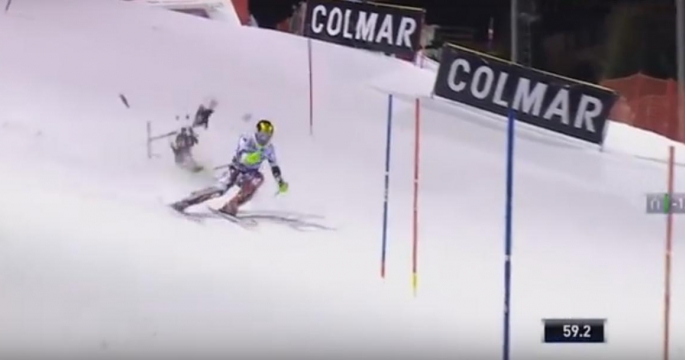 Дрон едва не упал на лыжника на соревнованиях в Италии