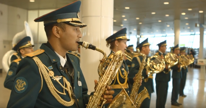 Военный оркестр устроил сюрприз пассажирам аэропорта Астаны