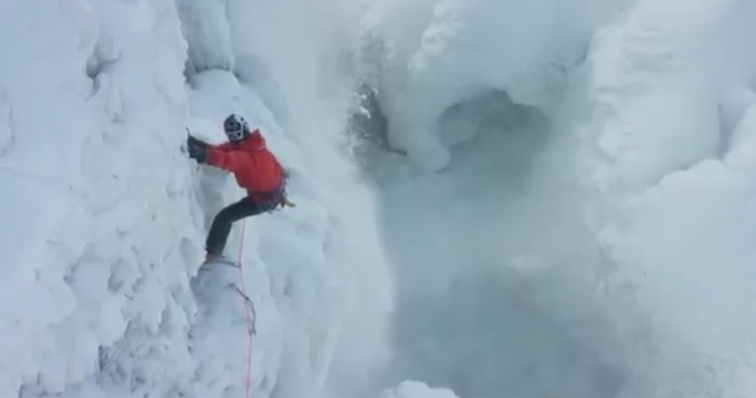 Первый в мире альпинист поднялся на замерзший Ниагарский водопад