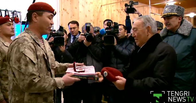 Президент Нурсултан Назарбаев стал обладателем крапового берета. Знак воинского отличия - краповый берет и значок подразделения специального назначения "Бүркіт" главе государства вручили на торжественном открытии военного городка оперативной бригады Национальной гвардии РК в Астане. Краповый берет является исключительным предметов гордости спецназовца. Право на его ношение имеют военнослужащие и сотрудники подразделений специального назначения, обладающие достаточными профессиональными, физическими и моральными качествами и успешно прошедшие квалификационные испытания. Кроме того краповый берет может быть вручен за мужество и отвагу, проявленные при исполнении служебного долга, а также за особые заслуги в деле развития подразделений и частей специального назначения.