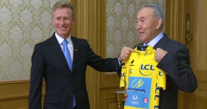 Нурсултан Назарбаев "примерил" майку победителя "Тур де Франс"