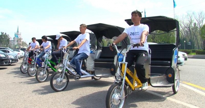 В Алматы начали курсировать велотакси. Со скоростью 20 километров в час и на расстояние в несколько кварталов теперь можно доехать на велорикше. Стоимость проезда от 200 тенге, однако сегодня, 14 апреля, и в день президентских выборов 26 апреля велотакси "подбросит" пассажиров до нужного адреса бесплатно. Кстати, в трехколесный транспорт вмещается два человека. С авто его роднит электродвигатель и ремни безопасности на диване для пассажиров. Авторы проекта вынашивали эту идею с прошлого года. При поддержке акимата южной столицы и управления внутренней политики велорикши впервые вышли на трассу. Всего их десять, но до конца года их число собираются увеличить до 50. Стоимость транспорта около четырех тысяч долларов. Все комплектующие привезены из Южной Кореи и собраны в Алматы. А курсировать они будут по улице Абая и Тимирязева, в парке Первого Президента и в микрорайоне "Самал".