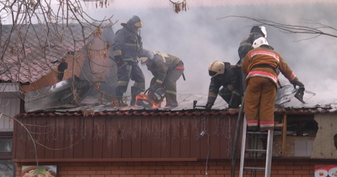 Пожар произошел в кафе-караоке Алматы, которое располагается на улице Шевченко, между улицами Наурызбай Батыра и Сейфуллина, сообщают корреспонденты программы "Территория происшествий". Горела кровля здания. Пожарные пытались не допустить распространение огня на здания автомойки и ресторана, находящиеся рядом. Вызов о пожаре поступил около 15.40 часов. На место прибыли семь пожарных расчетов, скорая помощь. Предварительная площадь возгорания - 300-400 квадратных метров.