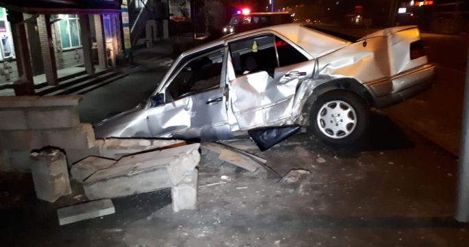В Алматы Мерседес остановился на ступеньках перед магазином.