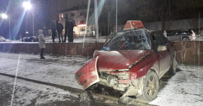 Lexus потерял колесо в столкновении 3 машин в Алматы.