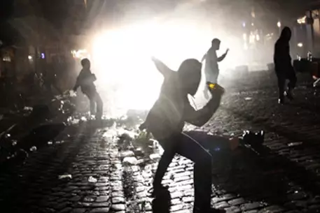 Ночью около 300 молодых людей вышли после концерта на центральную площадь города и стали закидывать полицейских камнями, бутылками, "коктейлями Молотова" и поджигать их машины. Волнения распространились на соседние улицы.