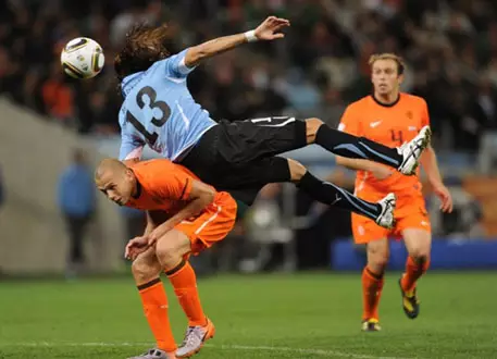 Сборная Голландии стала первым финалистом чемпионата мира по футболу, обыграв команду из Уругвая со счетом 3:2, сообщается на официальном сайте ФИФА. Vesti.kz вел онлайн-трансляцию этого матча. Встреча прошла в Кейптауне на стадионе Green Point. Счет в игре открыл 39-летний капитан "оранжевых" Джованни ван Бронкхорст, точно пробив с 30 метров на 17-й минуте. На 41-й минуте уругвайский нападающий Диего Форлан также с дальнего расстояния забил ответный гол. Во втором тайме подопечные Берта Ван Манрейка отличились дважды. На 69-й минуте полузащитник Голландии Уэсли Снайдер улучшил свой личный рекорд, забив четвертый гол в чемпионате. Через несколько минут хавбек Арьен Роббен окончательно развеял надежды латиноамериканцев, забив гол на 73-й минуте. На первой добавленной минуте к основному времени уругвайский защитник Макси Перейра переиграл нидерландского вратаря Мартена Стекеленбурга, сократив отставание до минимума. Следующий соперник Голландии определится 7 июля в игре сборной Испании против немецкой команды. Vesti.kz также будут вести онлайн-трансляцию этого матча.