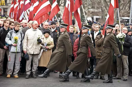 Шествие проходит в годовщину образования латышского легиона "Ваффен СС" (Waffen SS). Участники посетили богослужение в Домском соборе, а затем направились возлагать цветы к памятнику Свободы. Во главе колонны идет восьмилетний мальчик с латвийский флагом в руках. Демонстранты также несут флаги Литвы.