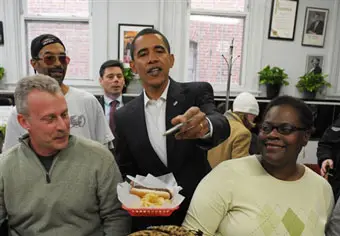 Барак Обама вместе с мэром Вашингтона Эдрианом Фенти посетил популярную закусочную "быстрой еды" в американской столице, сообщает РИА Новости. Национальный совет по хот-догам и сосискам сказал, что Обама обладает настоящим американским вкусом в еде и разбирается в хот-догах. После этого посещения совет с оптимизмом смотрит на место хот-догов и сосисок в меню Белого дома. Президенты США Франклин Рузвельт, Джими Картер, Рональд Рейган и Джордж Буш-младший "подавали" своим гостям в Белом доме сосиски в булке.