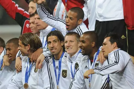 Сборная Германии завоевала бронзовые медали Чемпионата мира в ЮАР, сообщается на официальном сайте ФИФА. Матч за третье место со сборной Уругвая завершился со счетом 3:2. Vesti.kz вел онлайн-трансляцию этого матча. Встреча прошла на стадионе Nelson Mandela Bay в Порт-Элизабет.