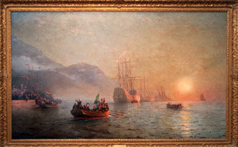 Русские аукционные торги откроются 22 апреля в Нью-Йорке, сообщают Вести.Ru. Предаукционная выставка уже встречает первых посетителей. На выставке представлены все лоты, которые будут участвовать в аукционе Sotheby's. Эксперты ожидают, что общая сумма торгов составит не менее 17 миллионов долларов, поскольку с молотка уйдут всемирно известные исторические и культурные ценности русского искусства. Так, среди лотов представлены иконы, написанные в 18-19 веках, предметы обихода российских царей, картины и скульптуры авторов с мировым именем. Одним из самых дорогих лотов является картина Ивана Айвазовского "Отплытие Колумба из Палоса", написанная в 1893 году для Всемирной выставки в Нью-Йорке и посвященная 400-летию открытия Америки. Начальная цена лота составляет по разным оценкам от 1,5 до двух миллионов долларов. Аукционный дом Sotheby's известен громкими продажами предметов роскоши, мировой культуры и искусства. Недавно в катарском филиале дома за 5,5 миллиона долларов продали "Жемчужный ковер", который предназначался для гробницы пророка Мухаммада в Медине.