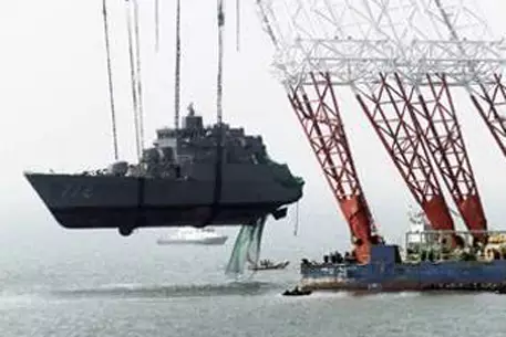 Спасатели подняли носовую часть затонувшего корвета "Чхонан"