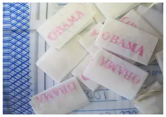 Конфискованная партия была сфотографирована в полицейском участке. На фото видно, что фамилия "Обама" проштампована на упаковке с героином красными чернилами. Наркоторговцы часто присваивают имена знаменитостей своему товару.