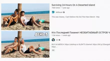 Один из крупных Youtube-блогеров Америки MrBeast обвинил автора канала А4 Влада Бумагу в плагиате. Об этом он написал в Twiter и приложил коллажи схожих обложек его роликов и видео Влада Бумаги, передает Tengrinews.kz.