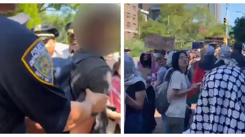 NYPD arrested two Columbia University students outside of Barnard gates. Officers were extremely aggressive with students, shoving protestors against the barricades. One officer was cited for using excessive force against a student. #Picket4Palestine pic.twitter.com/v37UoMeGHN