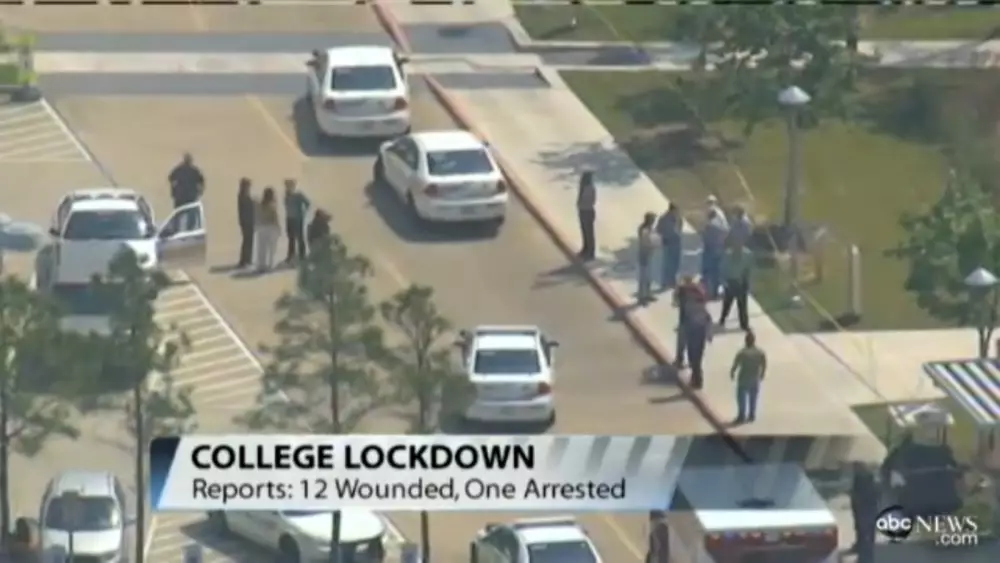 На территории колледжа Lone Star в городе Сайпресс, штат Техас, два вооруженных ножами человека устроили резню, сообщает ABC News. В результате 14 человек получили ранения, двое из них - в критическом состоянии. Несколько человек получили ранения в шею. Один из подозреваемых задержан, второй пока находится на свободе. По словам очевидца, задержать нападавшего помогли студенты. Вместе с тем, по информации местных СМИ, преступник действовал в одиночку. СМИ также располагают информацией о 15 пострадавших, в том числе четырех тяжело раненых.