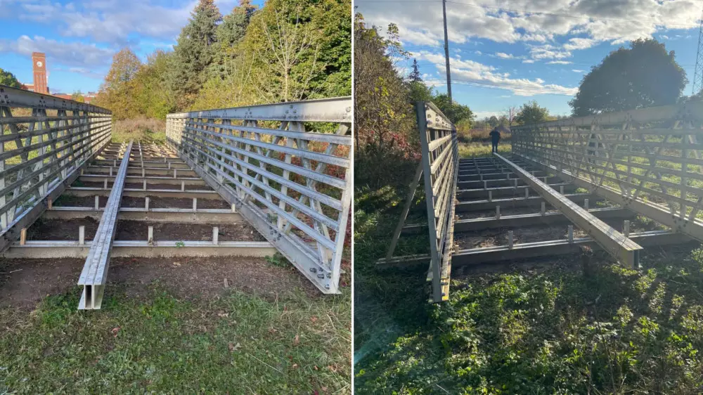 Городские власти оценивают стоимость моста в 30-40 тысяч долларов (около 13-14 миллионов тенге). По планам муниципалитета мост должен был быть использован как часть парковочного пространства, принадлежащего убежищу для женщин, пострадавших от домашнего насилия.