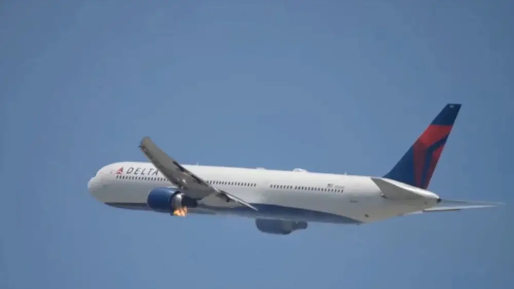 Delta Airlines Boeing 767 makes emergency landing after engine BURSTS INTO FLAMES mid-air!