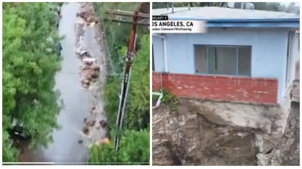 Пострадавших от пожаров в Лос-Анджелесе теперь эвакуируют из-за наводнения Кадры из видео: x.com/accuweather