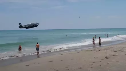 Самолет времен Второй мировой сел на пляже в метрах от людей в США