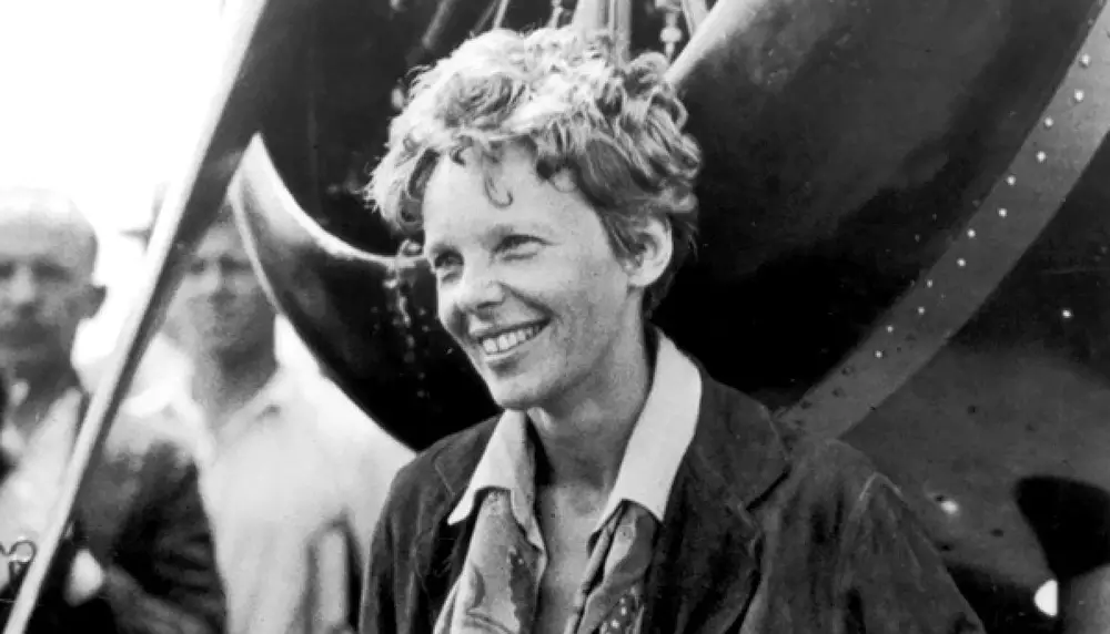 Эрхарт - первая женщина-пилот, перелетевшая Атлантический океан, и известная американская писательница. В 1937 году А.Эрхарт и штурман Фред Нунан предприняли кругосветный перелет вдоль линии экватора. Однако на финальной стадии перелета их самолет пропал в небе над Тихим океаном. Согласно последнему радиосообщению А.Эрхарт, у нее заканчивалось горючее, и она не могла найти остров Хауленд, где самолет должен был дозаправиться.