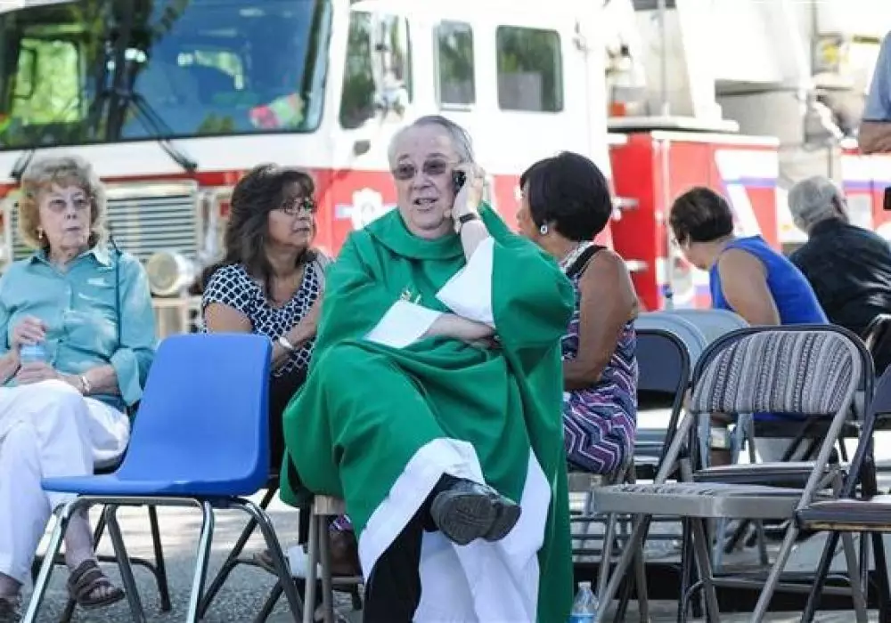 Примерно через полчаса сообщение о взрыве поступило в полицию из церкви Holy Cross Catholic Church, расположенной в пяти километрах от места первого взрыва. В этот раз взрывное устройство находилось в урне у входа в здание.