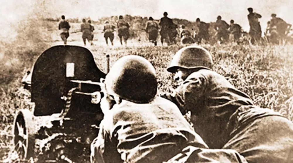 Нападение Германии дед встретил в звании сержанта, в должности командира пулеметного взвода. По строевому уставу РККА взвод состоял из двух пулеметов "Максим" с расчетами.