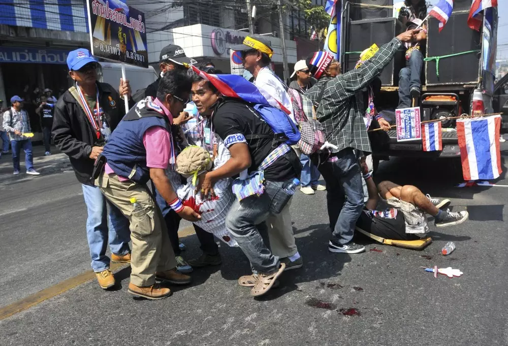 По информации СМИ, неизвестные бросили взрывное устройство или гранату в колонну демонстрантов. Ее возглавил лидер протеста Сутхеп Тхыаксубан. Он не пострадал.