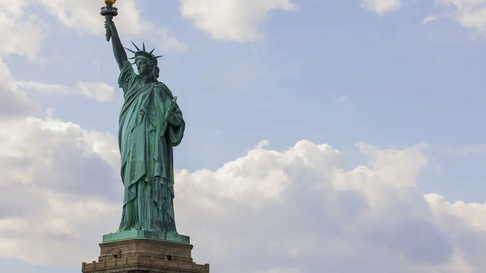 Она была открыта 28 октября 1886 года, в честь 100-летия американской Декларации независимости, и сейчас стоит на острове Свободы в Нью-Йорке, что к югу от Манхэттена.