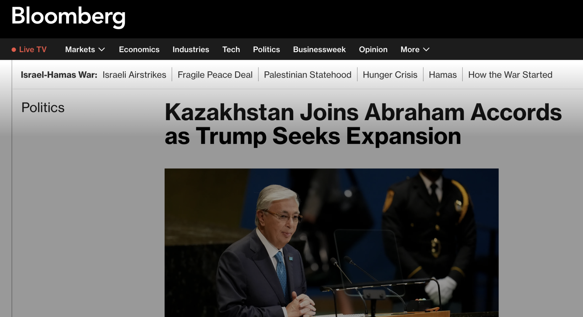 О присоединении Казахстана к Авраамским соглашениям написали сразу несколько ведущих американских СМИ — Fox News, CBS News, Bloomberg и другие.
