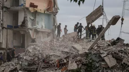 По меньшей мере 15 человек погибли после того, как российские ракеты попали в жилой дом в Часовом Яре, городе на востоке Украины, в Донецкой области, сообщают официальные лица. Пятерых пострадавших удалось достать живыми. Число погибших назвал представитель украинской службы спасения. Губернатор области Павел Кириленко заявил, что разрушения были вызваны российскими ракетами "Ураган".
