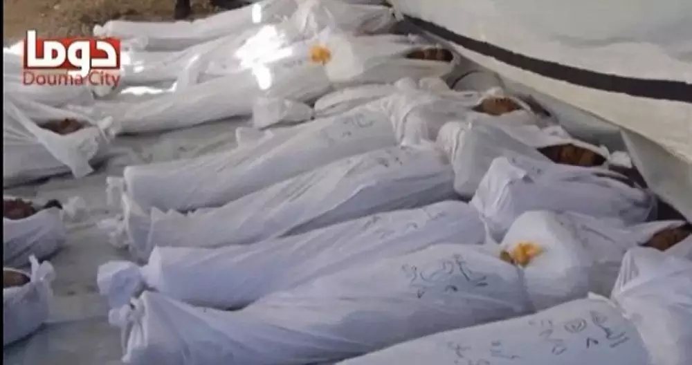 Судя по записям, среди жертв и пострадавших от газовой атаки много детей. В кадре видны ряды трупов, завернутых в белые ткани, а также отравившиеся, с надетыми на лицо кислородными масками. Некоторые люди бьются в конвульсиях.