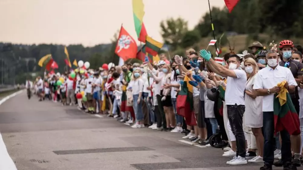 Вечером 23 августа около 50 тысяч жителей Литвы взялись за руки и образовали живую цепь от Вильнюса до населенного пункта Мядининкай на границе с Беларусью в знак поддержки протестующих в соседней стране. Прямую трансляцию с места событий вел портал DELFI, сообщает Tengrinews.kz.