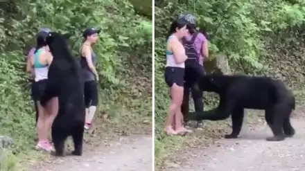 Необычная встреча с медведем произошла на севере Мексики. К туристам, гулявшим по экологическому парку, на дорогу вышел медведь и стал их обнюхивать. Как ясно из видео, туристам посоветовали не двигаться и подождать, пока зверь уйдет.